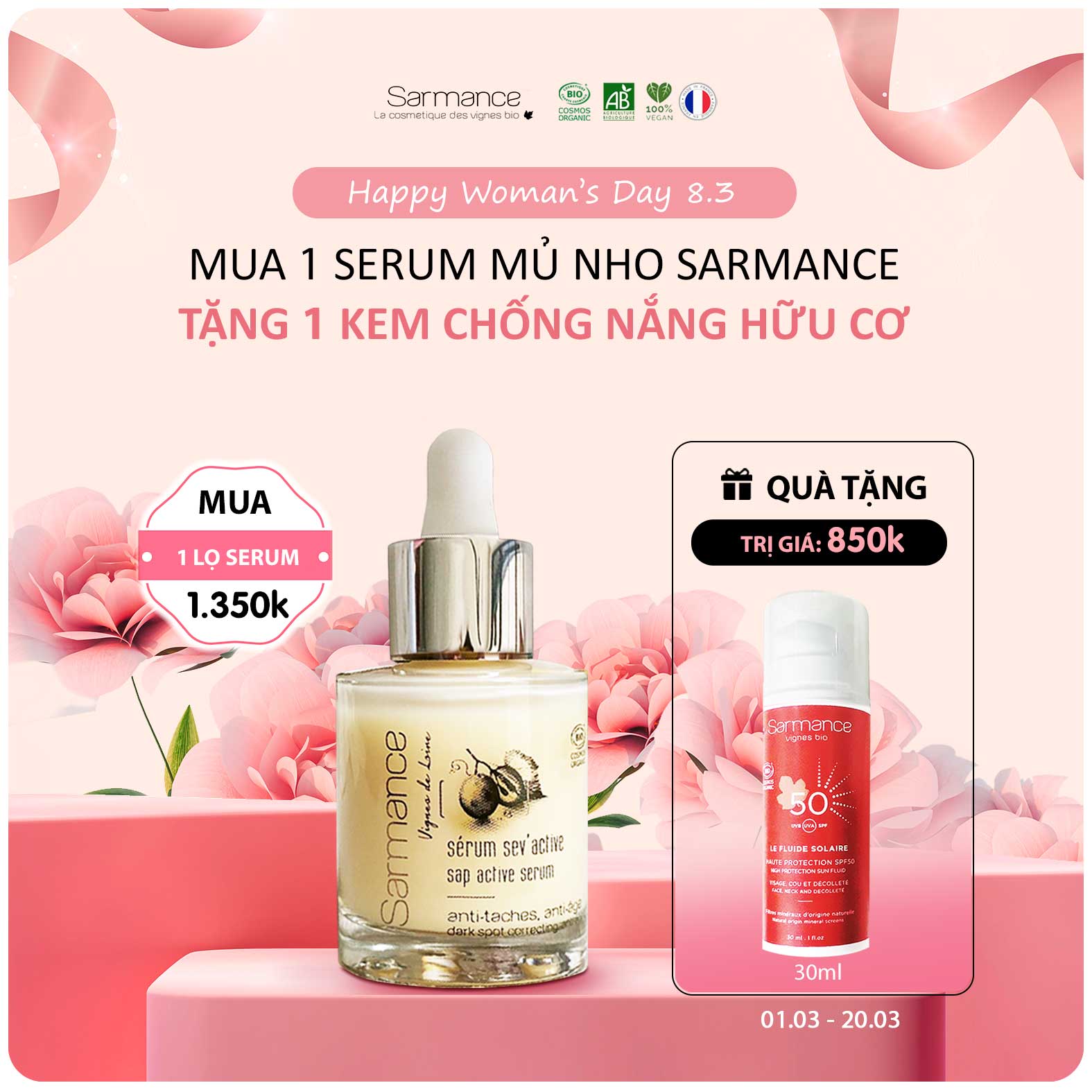 Mủ nho được biết đến với khả năng làm chậm quá trình lão hóa da, các chiết xuất hydrosol, macerate giúp chăm sóc tối ưu. Sarmance đã đạt chứng chỉ vàng cho mỹ phẩm hữu cơ - EcoCert. Tại Việt Nam, Pinky House là đơn vị phân phối chính thức và độc quyền của Sarmance. Bạn có thể liên hệ chúng mình để trải nghiệm dòng sản phẩm hữu cơ từ Pháp nhé!